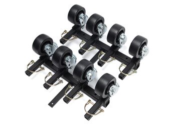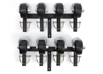 Wheel Set goes with the 80-136 Collapsible Car Stands to allow them to roll around freely. When wheels are not needed, store them up and out of the way in the included wall brackets.