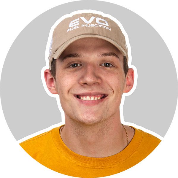 Justin lives by the motto, “It’s better to have it and not need it than to need it and not have it.” That spirit of preparedness not only serves him well in racing and in life, but also sets him up for success in the EVO Fuel Injection Department. Justin assembles EVO systems, monitors inventory, builds harnesses, and assists with phone support. When he’s not at work, Justin races both winged and wingless 600s at area speedways. He’s also played a key role in helping young drivers reach victory lane, including Gunnar Pio’s prelim night win at Airport Speedway and Chico Ramessar’s first career feature victory.